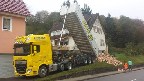 Der Einsatzbereich des Kippaufliegers ist der Transport von Aushubmaterial, Sand, Kies und Holz
